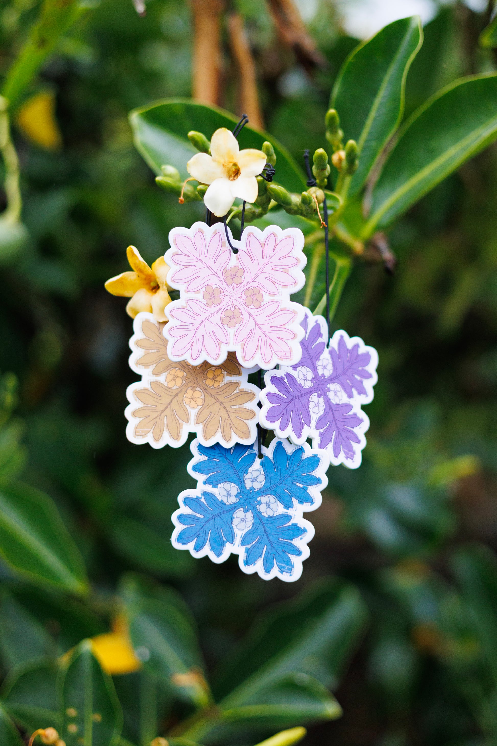 Enjoy the sweet aroma of our Puakenikeni, peach, or coconut air freshies. Keep your car, room, or space smelling amazing for the next two weeks!
